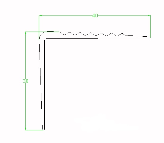 Profilo in PVC 70Sh angolare di colore nero, antisdrucciolo per gradini, come da disegno (immagine articolo).