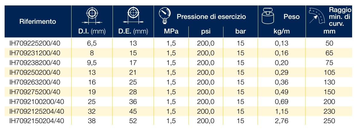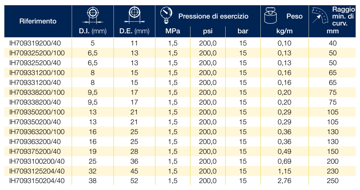 Indicato ed utilizzato in agricoltura ed in edilizia, in sistemi lubrificanti ad aria ed in generale nell’industria per mandata di aria (con tracce d’olio), prodotti chimici non aggressivi ed acqua. Trova svariate applicazioni nel settore OEM e nell’aftermarket. E’ una topologia di tubo non adatta per oli minerali o carburanti raffinati.